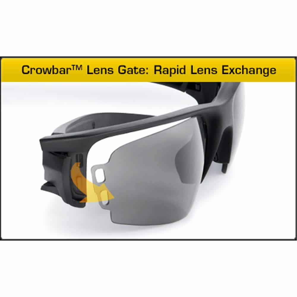 The Rollbar™ sunglass frame features a rotating Lens Gate™ that provides extremely rapid lens exchange and secure lens retention under impact: