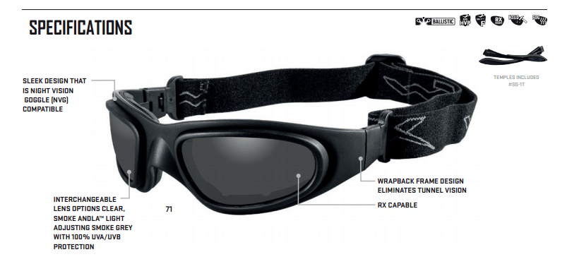 Safety Standards: This Rollbar™ sunglass is compliant with ANSI Z87.1-2010 ( impact), CE EN 166 and U.S. Federal OSHA. All ESS lenses provide 100% UVA/UVB protection.