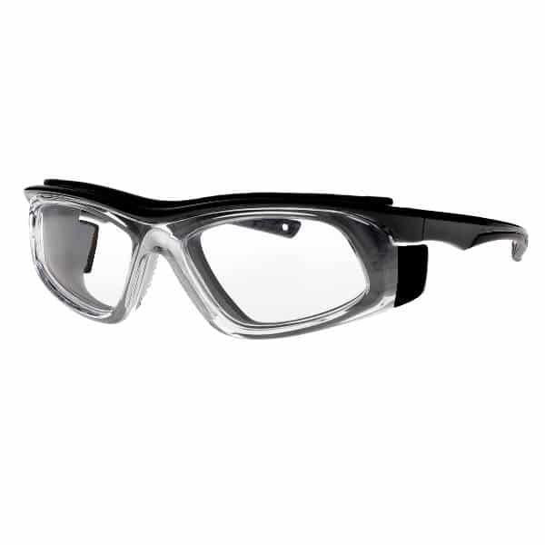 These glasses are also unique in that the frame is fitted with a silicone gasket which can be removed when not required. This gasket helps to keep dust and small particles out of the eye area. This frame is available in orange with clear and black with clear.