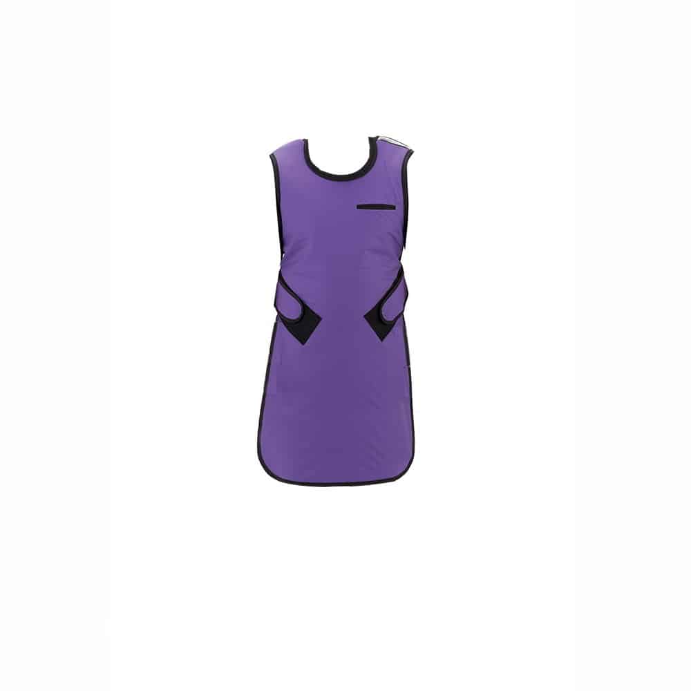 Our Frontal protection apron is fitted with front hook and loop closure belt. This apron style is available in Royal Blue or Purple.