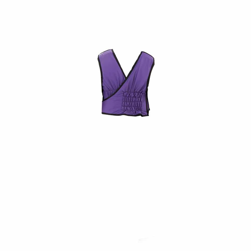 The criss-cross back straps wrap around the body to adjust fit to the front of the apron. Available in 0.5 Lead Equivalence.
